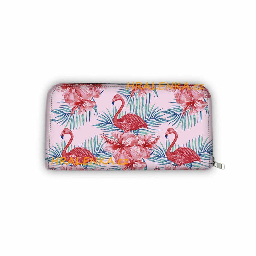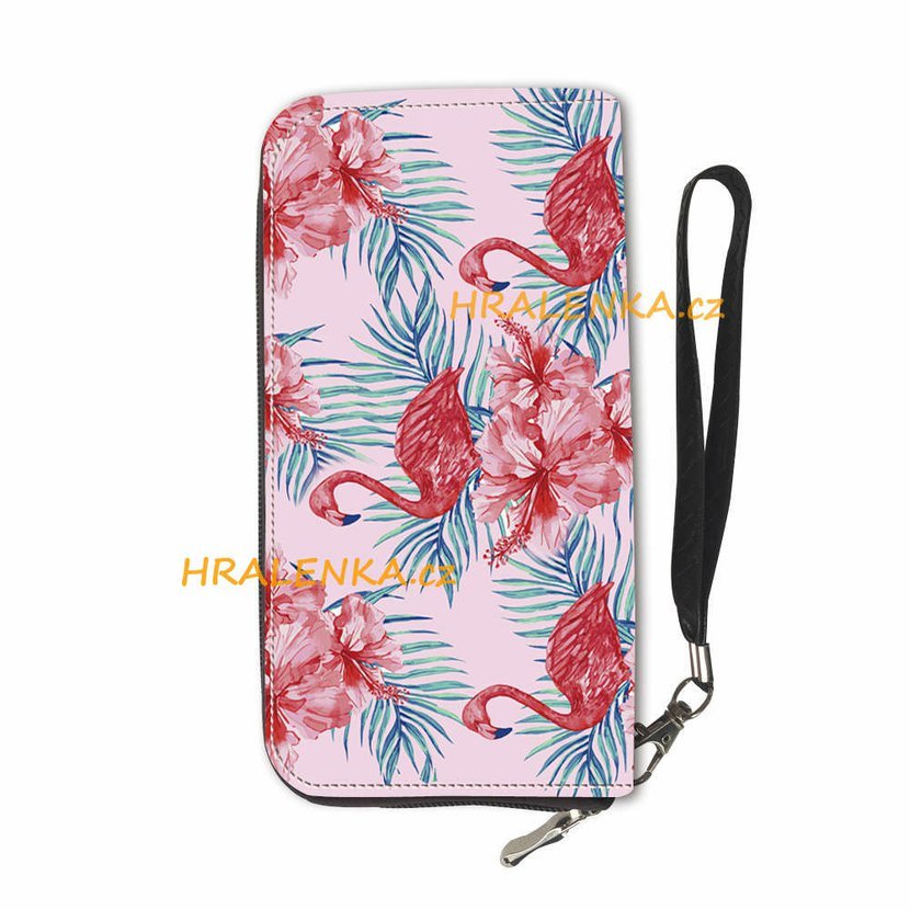 Dámská peněženka na zip plameňák a květy
