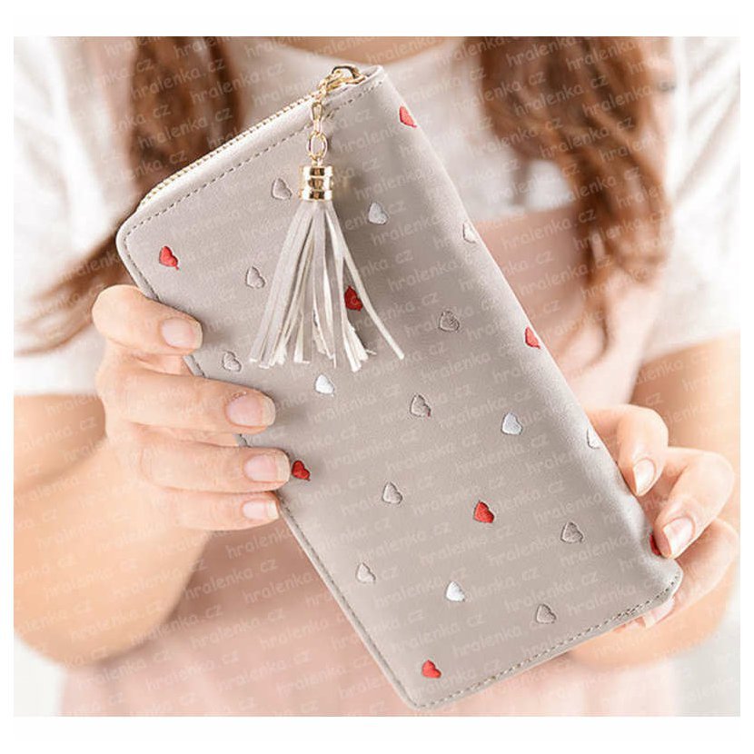Dámská peněženka na zip se srdíčky krémovohnědá