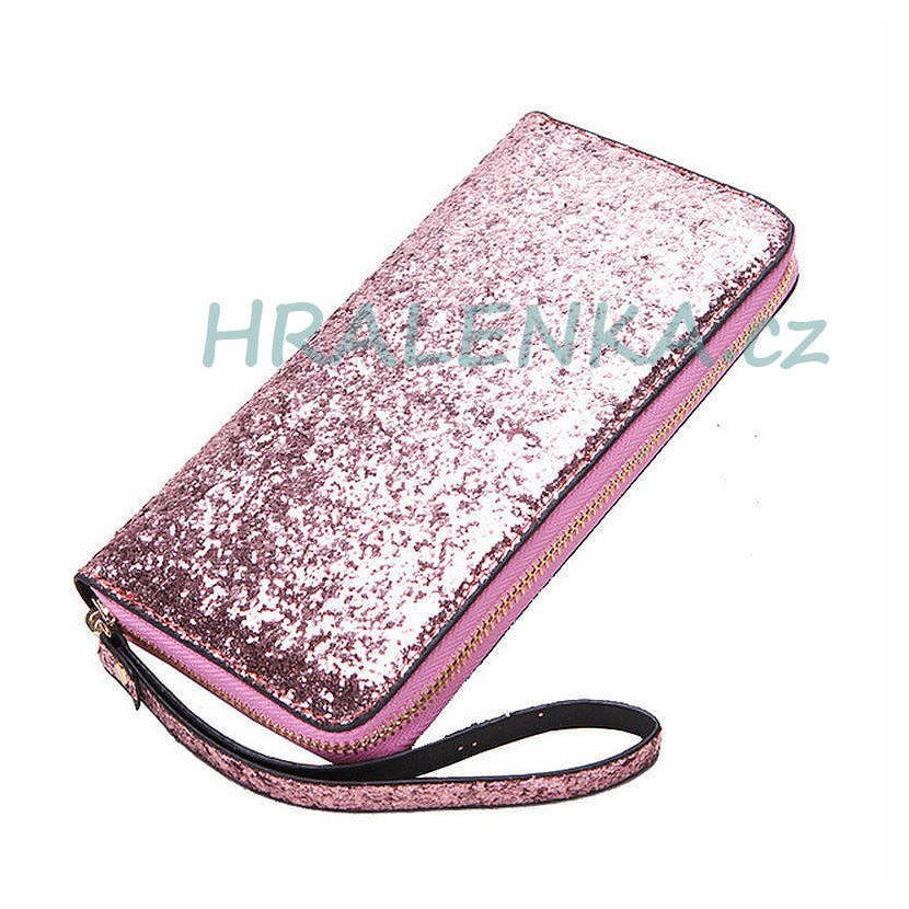 Dámská třpytivá peněženka na zip růžová