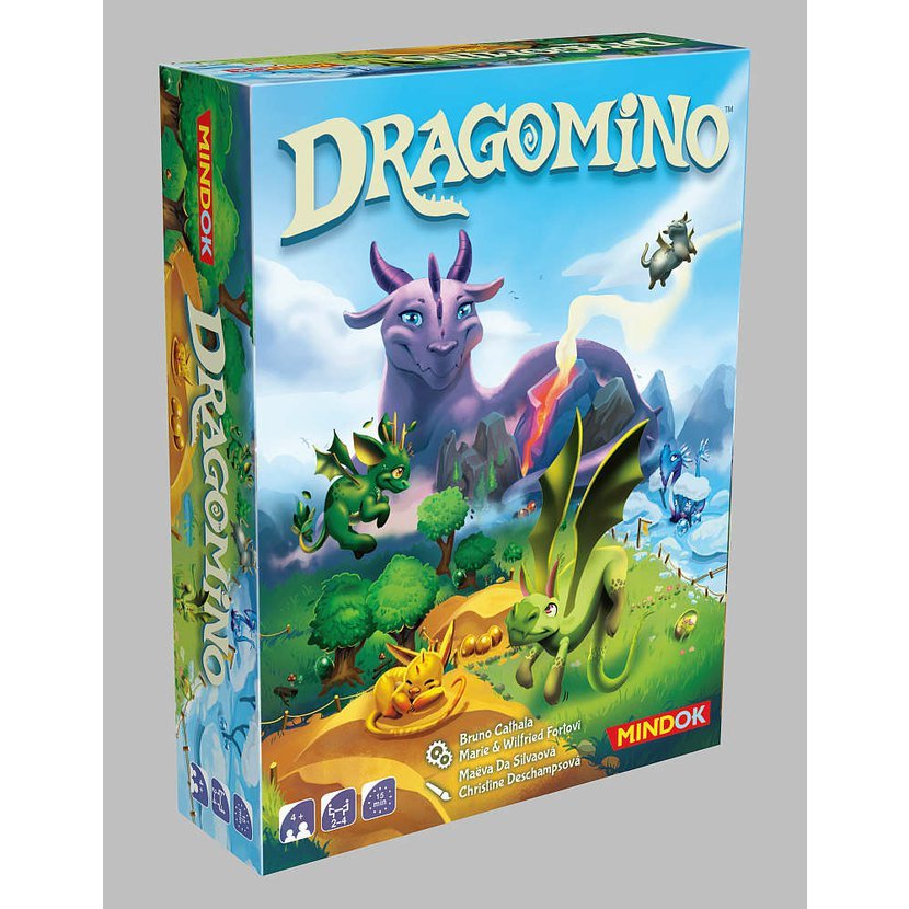 Prozkoumejte rozličné krajiny tajemného Dračího ostrova, najděte vzácná dračí vejce a ochočte si neposedná dráčata! Dragomino je samostatná hra z rodiny Kingdomino, která potěší i ty nejmenší hráče. 1. Navštivte nové krajiny výběrem dílku domina. 2. Přidejte domino do své prozkoumané oblasti. 3. Objevte dračí vejce spojením krajin stejného typu. 4. Nahlédněte, zda jste našli draka, či jen prázdnou skořápku. Kdo z vás najde nejvíce dračích mláďat?
