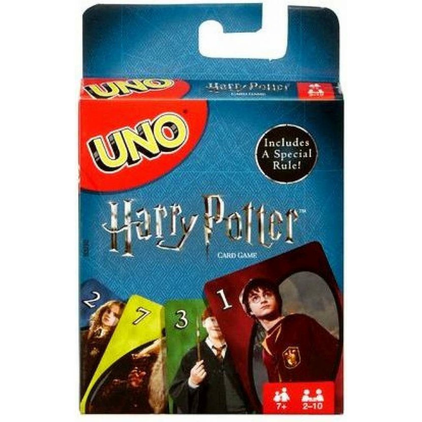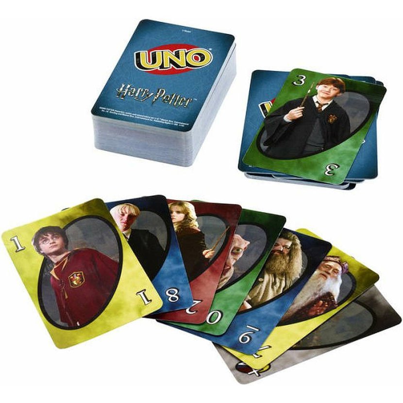 Vaše milovaná hra nyní přichází v designu strhujícího Harry Potter! Připojte se k Harrymu, Hermioně, Ronovi, profesoru Brumbálovi a dalším oblíbeným postavám z Bradavic a užijte si večer ve společnosti oblíbené karetní hry UNO™. Hráči se snaží co nejrychleji zbavit všech svých karet tím, že umístí kartu stejné barvy nebo hodnoty na vrchní kartu odkládacího balíčku. Snažte se jako první zbavit všech svých karet a získat tak body. Hru ozvláštňují speciální akční karty, které mohou během okamžiku změnit průběh hry. V této verzi na vás čeká nová speciální karta Moudrý klobouk! Jakmile zahrajete tuto kartu, vyberte hráče, který si musí brát karty, dokud nenajde kartu Nebelvíru! Vítězem se stává hráč nebo tým hráčů, který jako první získá 500 bodů. Až budete mít v ruce poslední kartu, nezapomeňte zakřičet „UNO“!