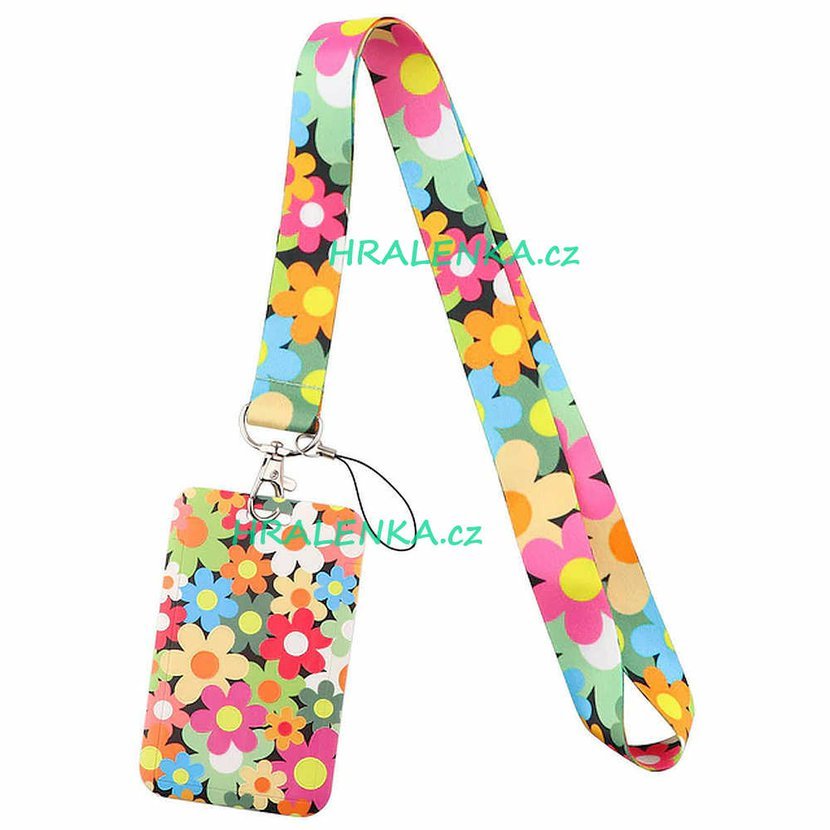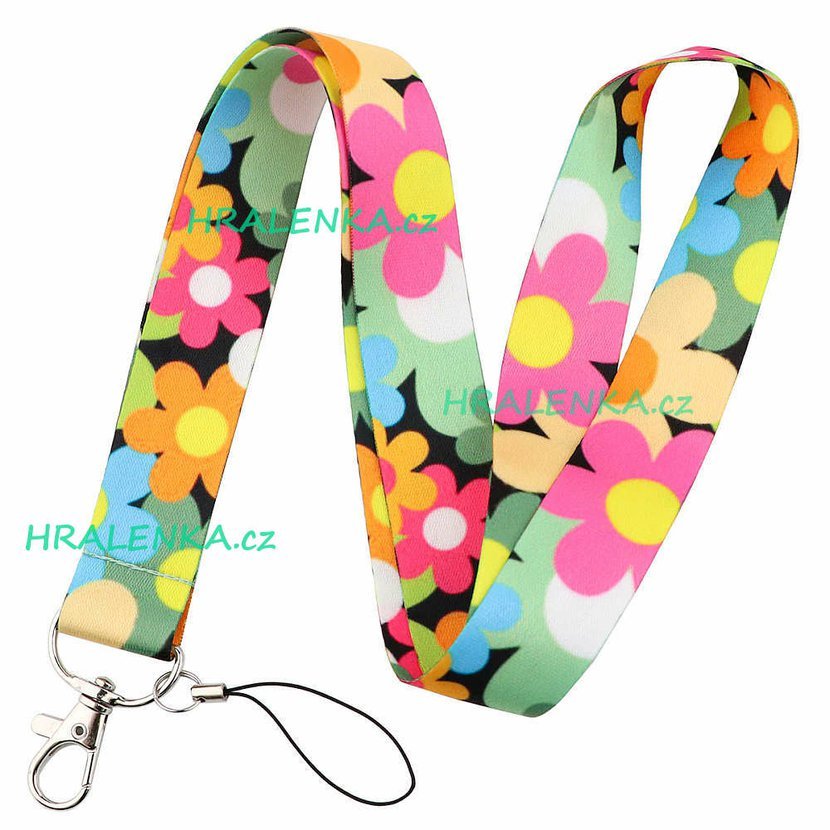 Klíčenka 22424 šňůra na krk s cedulkou barevné Květy