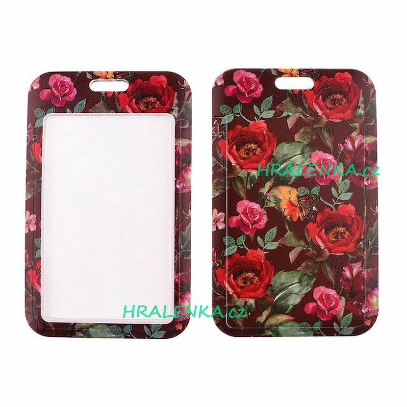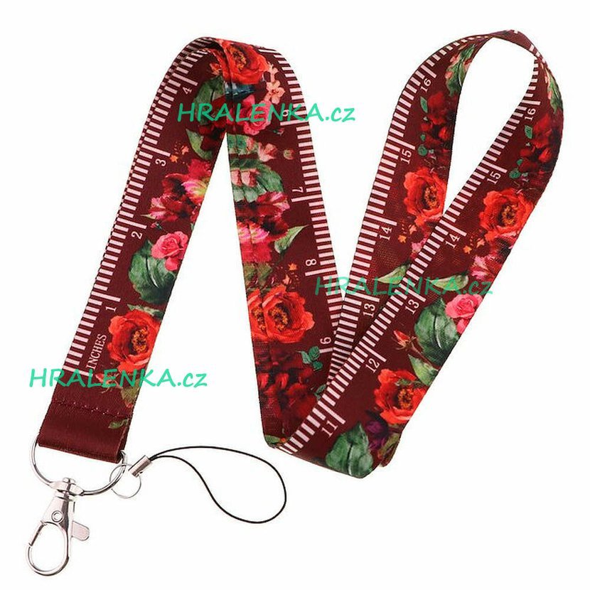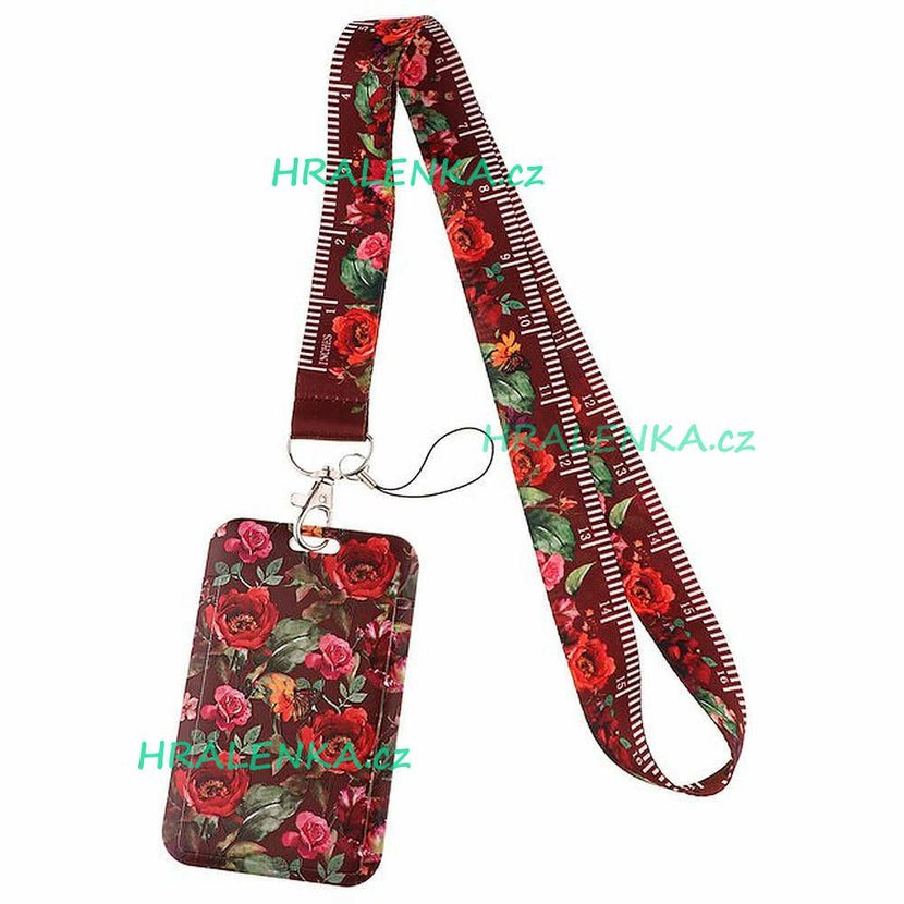 Klíčenka 22425 šňůra na krk s cedulkou červené Kytky