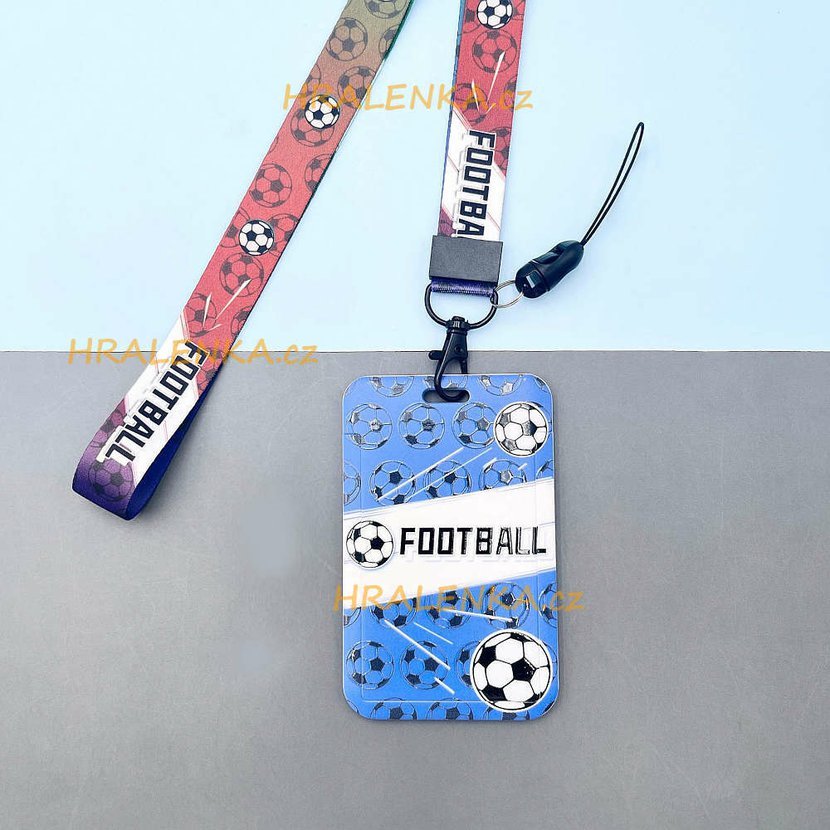 Klíčenka 22503 šňůra na krk s cedulkou modrá Fotbal