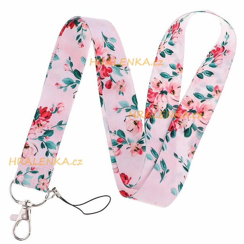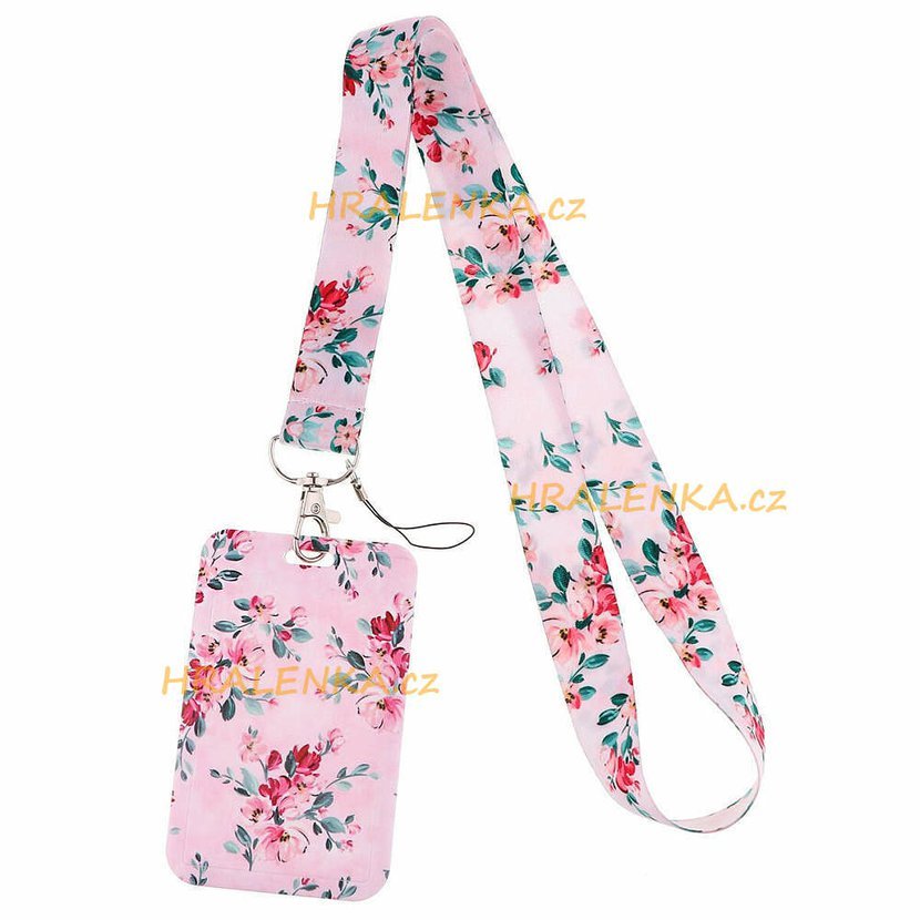 Klíčenka 22562 na krk s cedulkou Kytičky, růžové