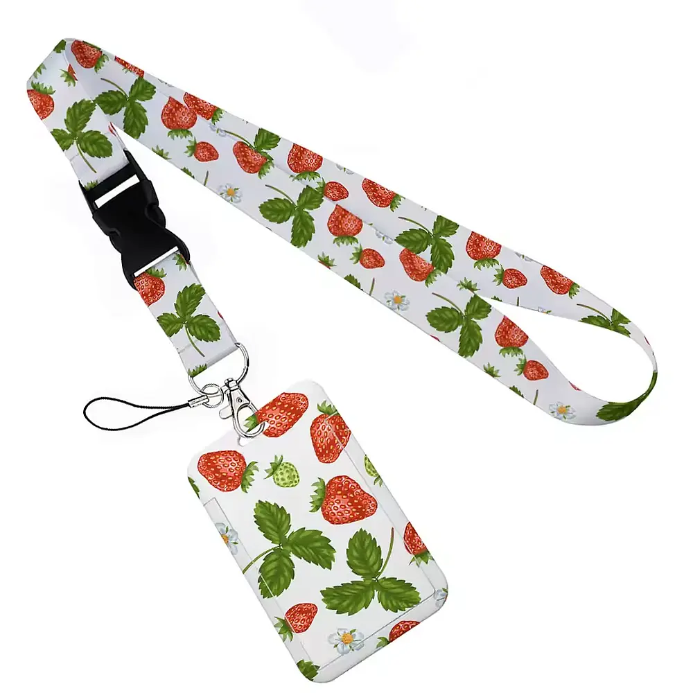 Klíčenka 25463 šňůra na krk s cedulkou na ID karty, Jahoda