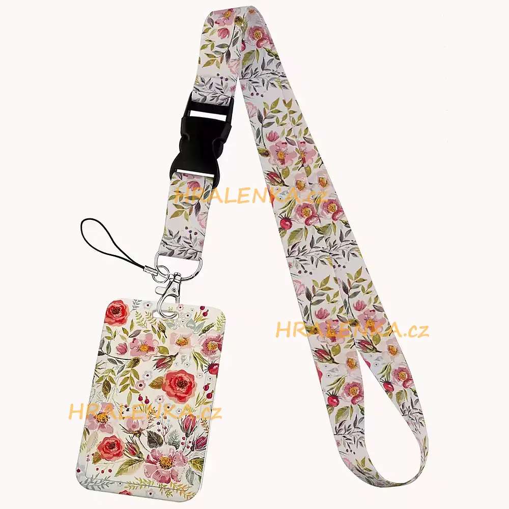 Klíčenka 26006 šňůra na krk s cedulkou na ID karty Kytky