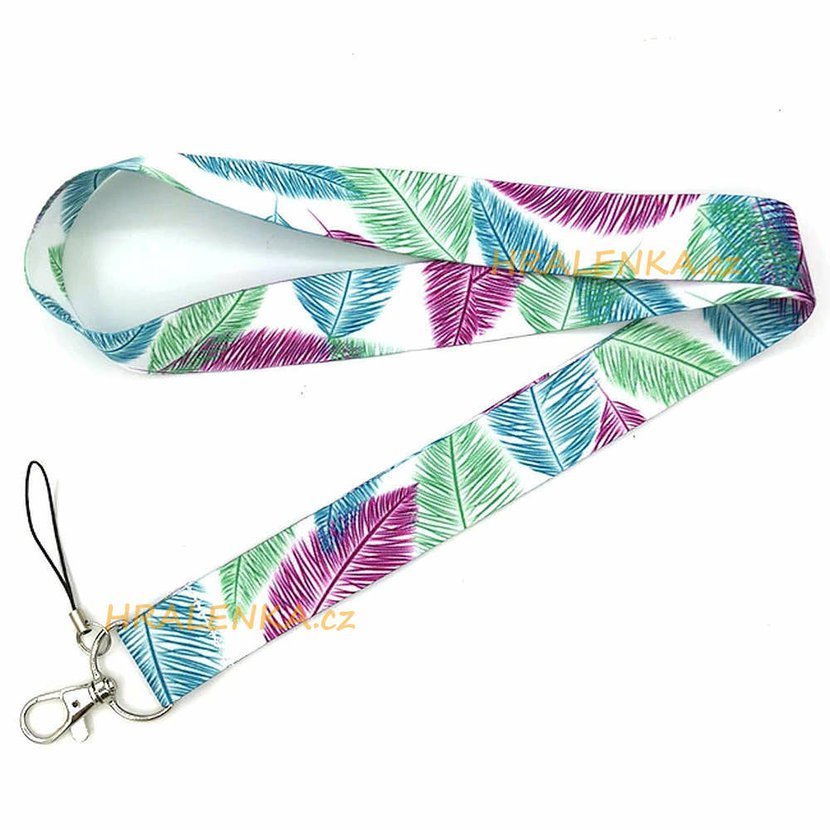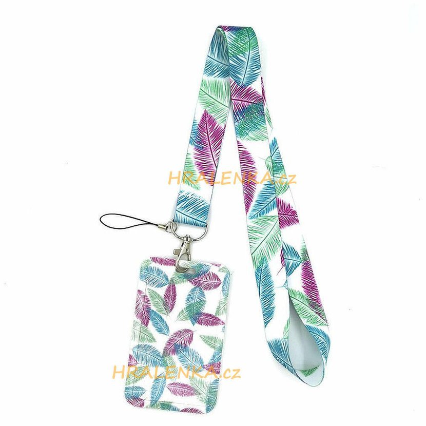 Klíčenka šňůra na krk s cedulkou Lístečky, peříčka