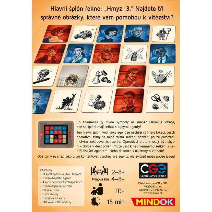 Hlavní špión řekne: „Hmyz: 3.” Najdete tři správné obrázky, které vám pomohou k vítězství? Co znamenají ty divné symboly na mapě? Označují lokace, kde se špióni mají setkat s tajnými agenty? Jen hlavní špióni vědí, jaký agent se nachází ve které lokaci. Jejich operativní týmy se tajná místa setkání dozvědí pouze prostřednictvím zakódovaných zpráv. Operativci proto musejí být chytří – chyba v dekódování může vést k nepříjemnému setkání s nepřátelským agentem. Nebo dokonce s nájemným vrahem! Oba týmy se snaží jako první kontaktovat všechny své agenty, ale zvítězit může pouze jeden!