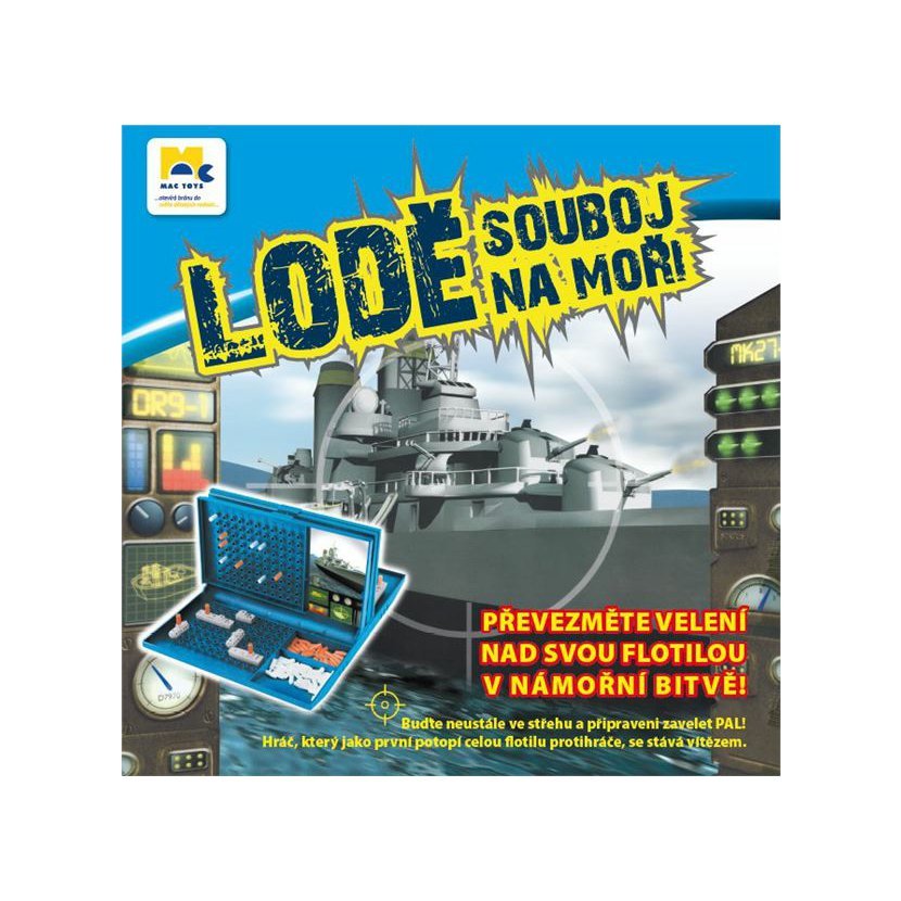 Strategická hra, jejímž cílem je sestřelit protivníkovy lodě, kombinací písmen a čísel. Sestavte hru. Vodorovná plocha slouží k umístění Vašich lodí, svislá k označení Vašich střel. Umístěte lodě. Jestliže je jednou umístíte, nesmíte s nimi již pohybovat. Rozhodněte kdo začne. Střílíte pomocí kombinace písmen a čísel např. C9, E5 apod. Protihráč musí po pravdě odpovědět, jestli byl zásah, nebo omyl. Zásah označíte do zaměřovacího pole červenou střelou, omyl bílou. Protihráč by si měl označit zásah na své lodi také. Pokud zasáhnete, střílíte znovu, pokud ne, střílí protihráč. Hru vyhrává ten, kdo první zasáhne všechny protivníkovy lodě. Hra je vyrobena tak, že je možné ji hrát i během cestování.