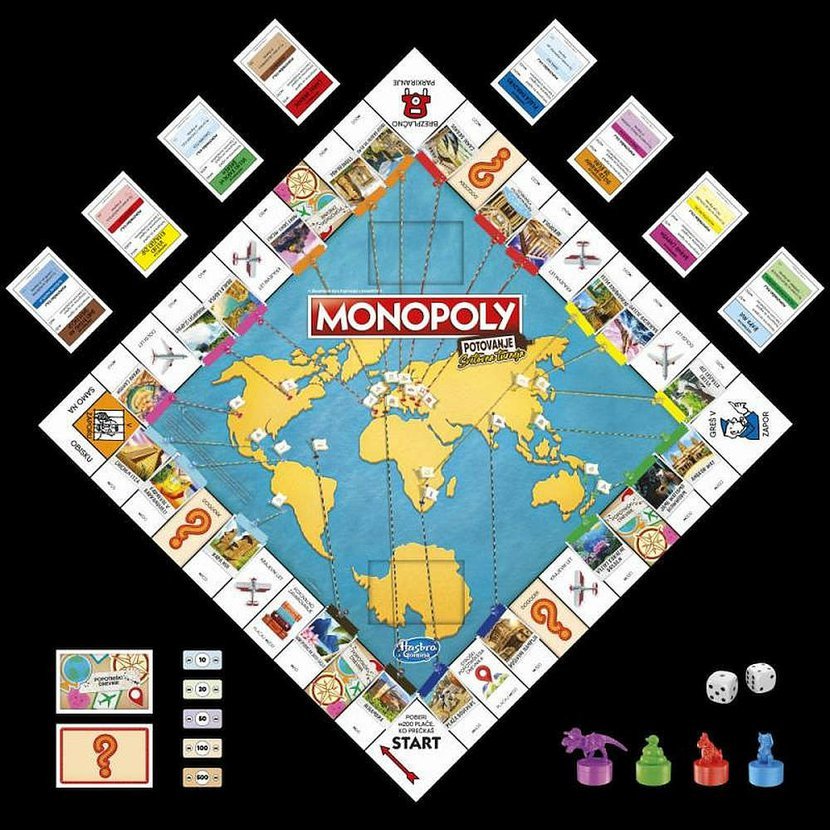 Vydejte se na cestu kolem světa a zavítejte na vzrušující místa! Záznamy o své cestě si můžete na herní ploše vést pomocí razítkovacích žetonů. Svět už čeká! Hráči se pohybují po mazatelné hrací desce, navštěvují různá místa a absolvují výlety, aby získali karty Šance. Čím víc budete cestovat, tím větší budete mít ve hře vliv. Díky mazatelné hrací desce si hráči jednotlivé destinace mohou po příjezdu orazítkovat pomocí roztomilých razítkovacích žetonů. V balení najdete 50cm mazatelný hrací plán, balíček karet Šance a Pokladna a Kupní smlouva, čtyři razítkovací žetony, dvě kostky a návod.