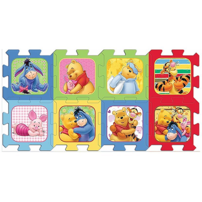Krásné pěnové puzzle s medvídkem PÚ a jeho kamarády. Velikost složeného obrázku 117,5 x 60,5 cm. Velikost 1 dílku cca 28 cm, tloušťka cca 1,5 cm. Z dílků můžete složit kostku či obrázek.