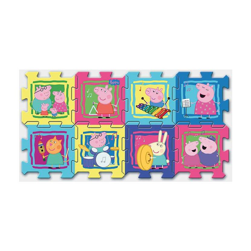 Krásné pěnové puzzle Peppa Pig, Pepina a přátelé. Velikost složeného obrázku 117,5 x 60,5 cm. Velikost 1 dílku cca 28 c, tloušťka cca 1,5 cm. Z dílků můžete složit kostku či obrázek.