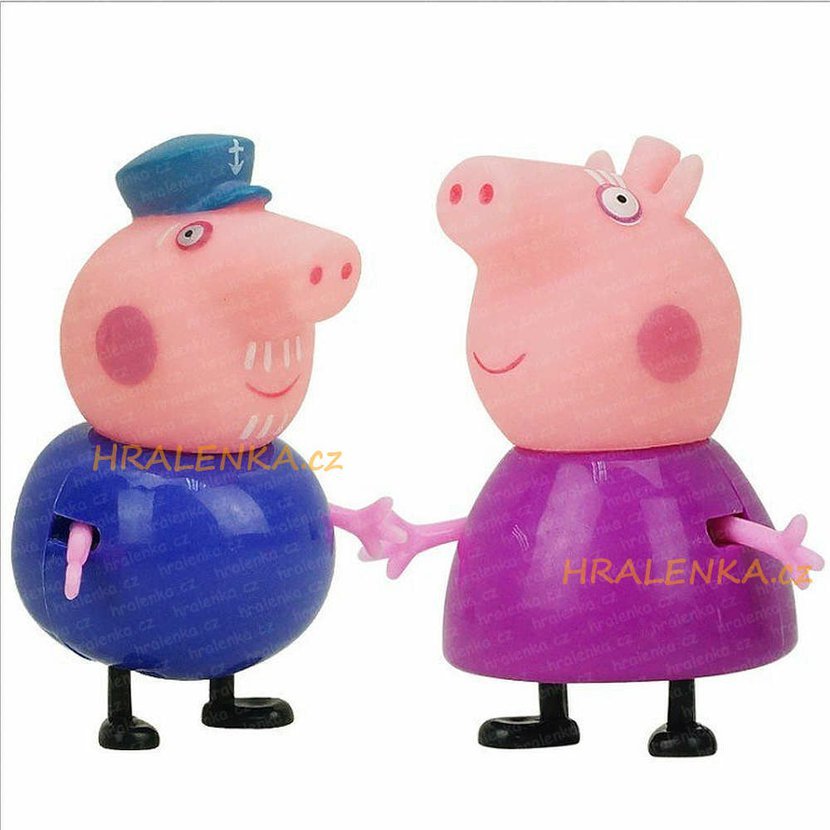 Set 2 figurek. Peppa je malé prasátko v červených šatech. Je hravý, zvědavý, velmi chytrý a miluje dobrodružství. Prase má rád čokoládové sušenky, oslavy narozenin a výlety na kole a pikniky. Figurky mají hlavičky z gumy a tělo z plastu. Figurka jsou balena v igelitovém sáčku. Nejedná se o licenční zboží.
