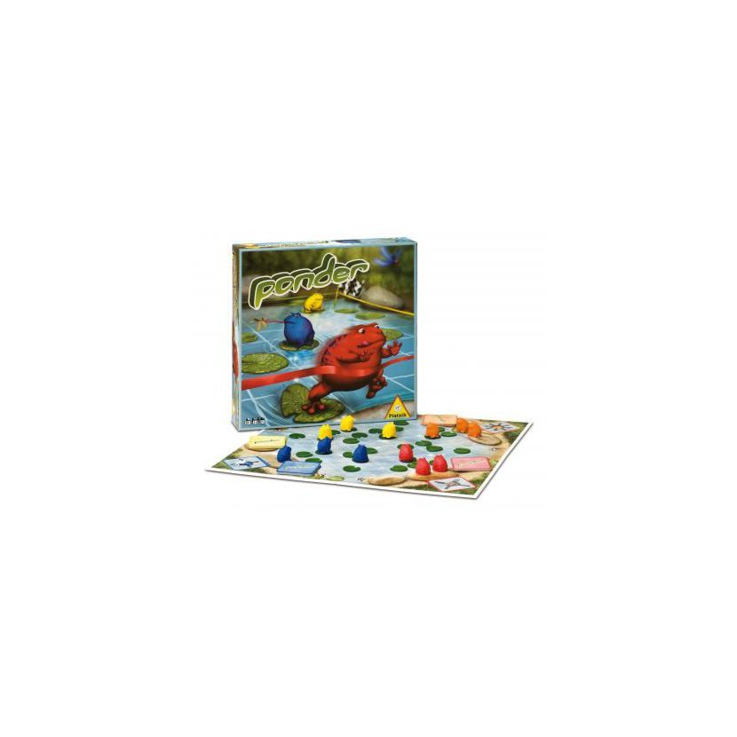 Vítejte u rybníka! Jste tu včas - právě začíná závod žabek! Cílem hry je dostat svůj žabí tým na druhou stranu rybníka dříve, než se to podaří ostatním. Tvoje žabky však nejsou v příliš dobré kondici, na druhou stravu proto musí skákat po listech leknínů. Žabky mohou skákat jen podle toho, jak dovolí pohybové kartičky! Pozor ale na soupeře, můžou vás knock-outovat zpátky na startovní břeh. Ponder je rychlá, zábavná a strategická hra pro celou rodinu. Obsah balení: 1 hrací deska, 12 žabek (3 kusy od každé barvy - žlutá, modrá, červená a oranžová), 4 x 15 pohybových kartiček, 28 leknínů, pravidla hry