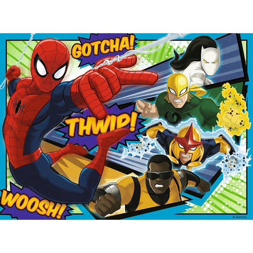 Puzzle z kolekce Avengers, Spiderman 4 v 1 - 25, 36 a 49 dílků. Velikost složeného obrázku 18x18 cm.