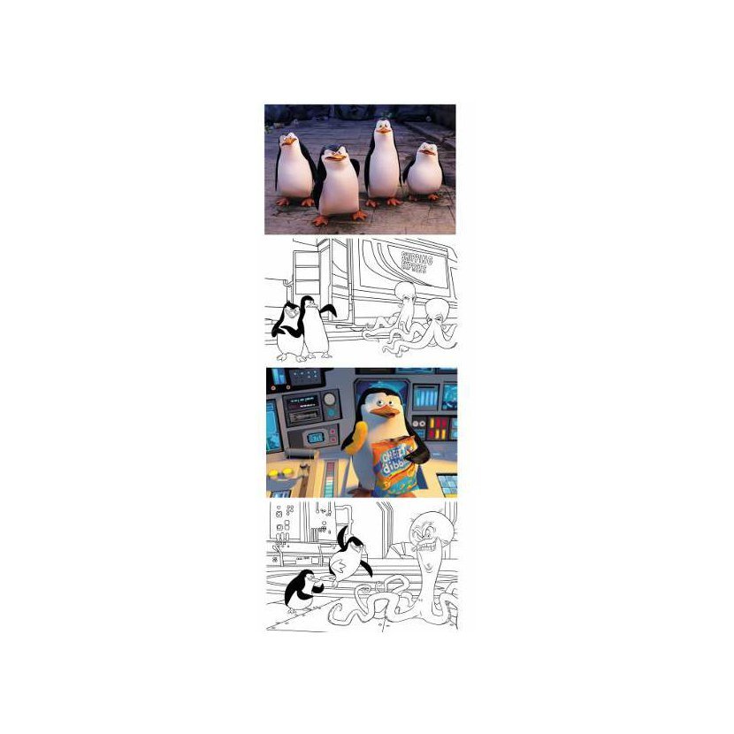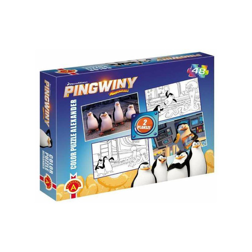 Puzzle z kolekce Tučňáci z Madagaskaru. Každý obrázek se skladá ze 48 dílků - na jedné straně je obrázek ke složení a na druhé straně je obrázek černobílý k vybarvení.