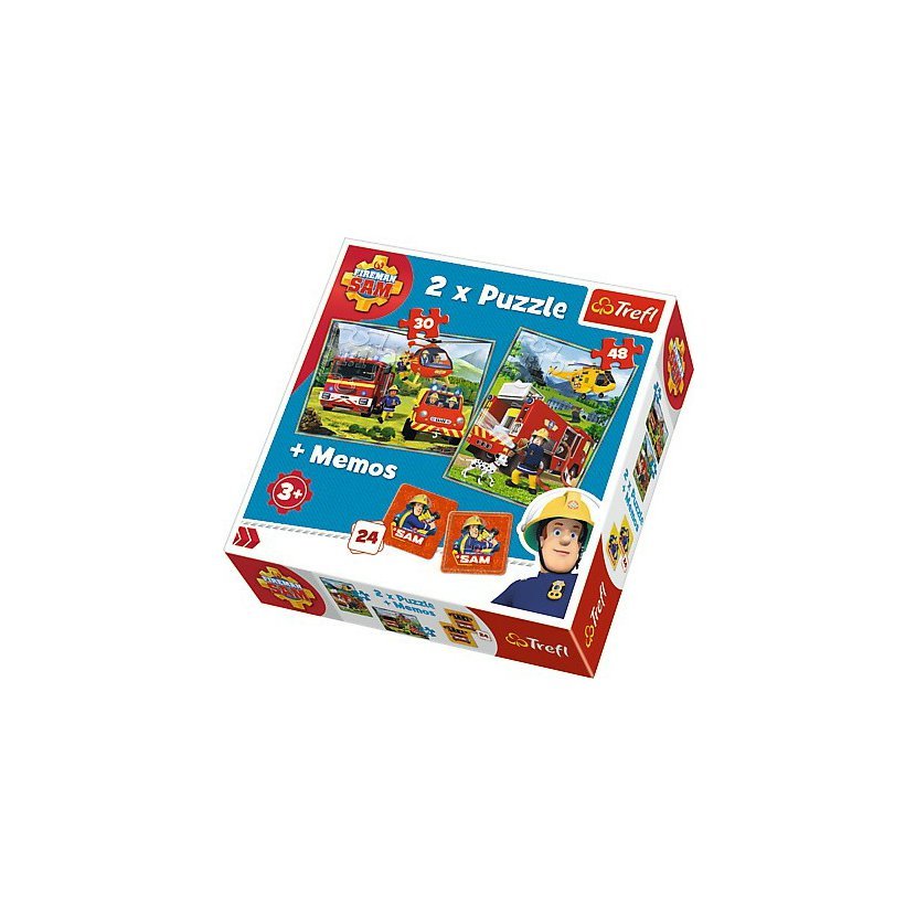 Puzzle a memo (pexeso) z kolekce Psí tlapková patrola. Balení obsahuje 1x puzzle s 30 dílky, 1x puzzle se 48 dílky a 24 karet na memo.
