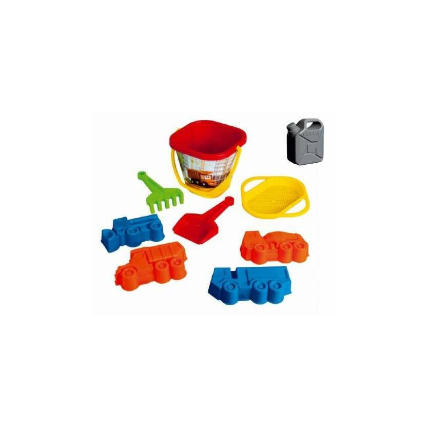 Sada na písek v kvalitním plastovém provedení v sérii TATRA. Sada obsahuje kyblík s motivem tatry, kanystr, hrabičky, lopatku, sítko a 4 formičky ve tvaru nákladních aut.