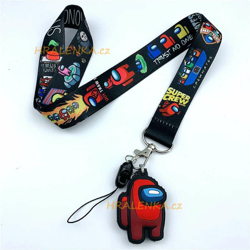 Šnůra na krk, klíčenka Among US s přívěskem tm. šňůra, červený