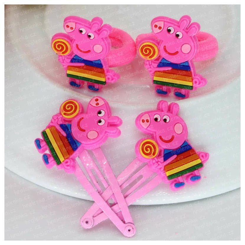 Sponky a gumičkydo vlasů Peppa Pig, Pepina 1+1 pár - duhová