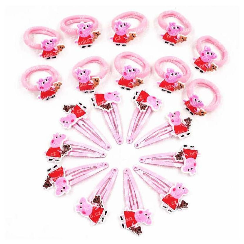 Sponky a gumičkydo vlasů Peppa Pig, Pepina 1+1 pár s medvídkem