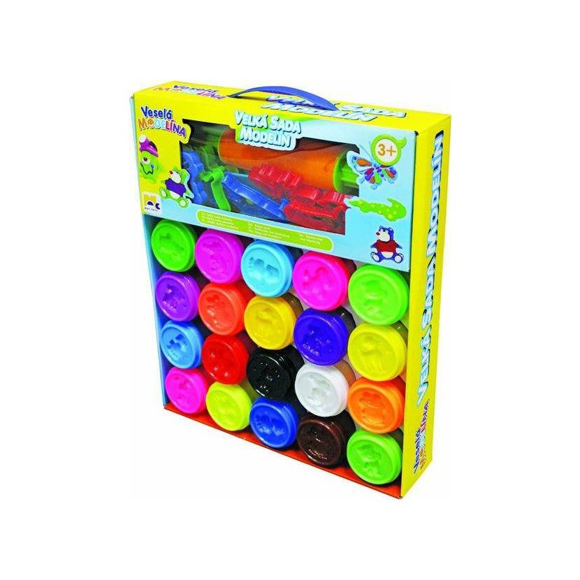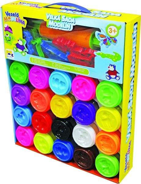 Skvělá velká sada modelín, která obsahuje 20 kelímků a spostu tvarovátek a vykrajovátek na tvoření.