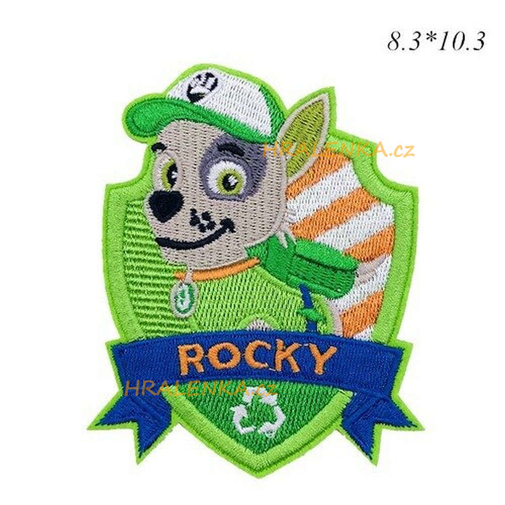 Vyšívaná nášivka Psí patrola ROCKY odznak 8,3x10,3 cm